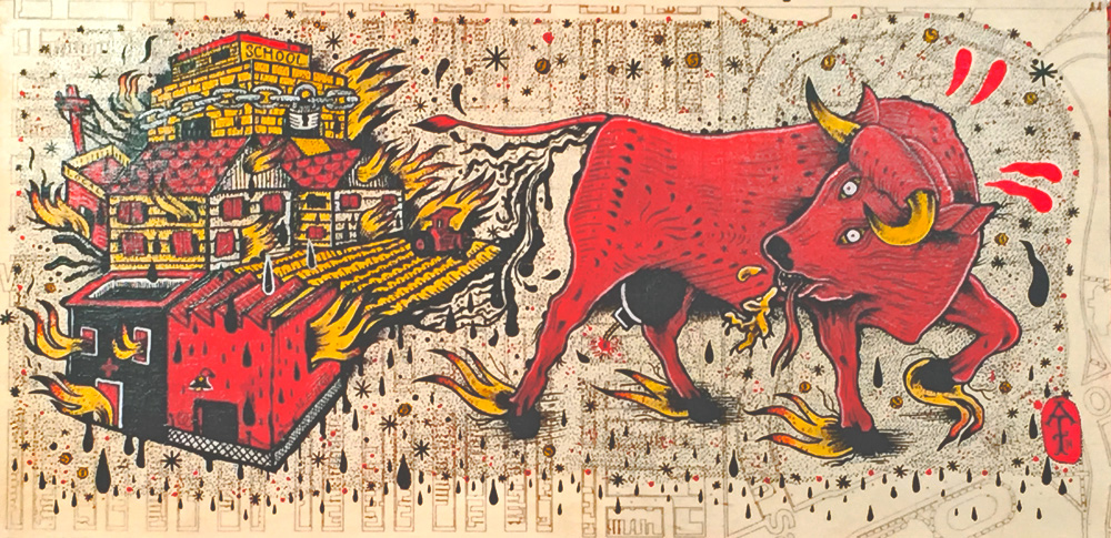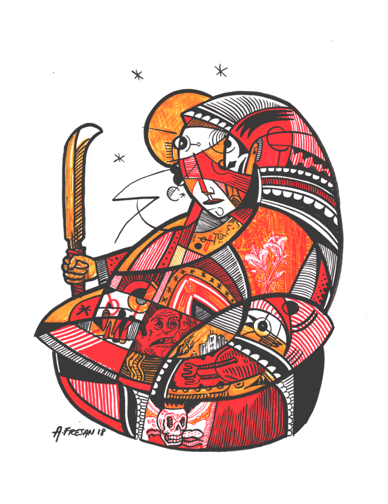 The Fool / Acrylic On Wood / 24×12 / Chicago 2013The Magician / Acrylic On Wood / 24×12 / Chicago 2013High Priestess / Acrylic On Wood / 24×12 / Chicago 2013Empress / Acrylic On Wood / 24×12 / Chicago 2014Emperor / Acrylic On Wood / 24×12 / Chicago 2013Union / Acrylic On Wood / 24×12 / Chicago 2013Scene 1: Altares de humo y hueso, MMXV Böotes / Acrylic on wood panel, / 16×20 / Chicago 2015 / SOLDAltar 1: In Memoriam (in memory of) MCMLXVIII Serpens / Acrylic On Wood panel, 16×20. 2015 (George Engel, Democratic national convention riots / Tlatelolco Massacre, October 2nd 1968). Available.Altar 2: Conunxisset (Join) MCMXXXVII Sagita / Acrylic on wood panel, 16×20. Altar 3: Conposita (cooperate) MCMXXXVI Hercules / Acrylic on Wood Panel, 16×20 / Chicago 2015Altar 4: Aecus (To Be Fair) MCMlXVIII Sagittarious acrylic on wood panel, 16×20. 2015 (Oscar Neebe, Chicago Riots, April 5th, 1968). AvailableAltar 5: Universum (All Together) MDCCCLXXXVI Ursus Minor / Acrylic on wood panel / 16×20 / Chicago 2015 / SOLDAltar 6: Autonomous MCMV Antiae / Acrylic on wood panel, 16×20 / Chicago 2015Altar 7: Constantia (Courage) MDCCCXCIV Libra / Acrylic on wood panel, 16×20.Altar 8: Integritas MCMXIX Monoceros / Acrylic on wood panel, 16×20. SOLDHead Of The Baptist / Acrylic on Hot Press Watercolor Paper / 16×12 / Chicago 2015 / Candidate / Acrylic on Hot Press Watercolor Paper / 16×12 / Chicago 2015 / SOLDIncertidumbre / Acrylic on Hot Press Watercolor Paper / 16×12 / Chicago 2015Ruina Apática / Acrylic on Hot Press Watercolor Paper / 16×12 / Chicago 2015The Dream Is Dead / Acrylic on Hot Press Watercolor Paper / 16×12 / Chicago 2015 / SOLDUntitled 1 / Original Two Color Drawing / 17×11 / Chicago 2016 / SOLDUntitled 3 / Original Two Color Drawing / 17×11 / Chicago 2016 / SOLDUntitled 2 / Original Two Color Drawing / 18×12 / Chicago 2016Aguila / Acrylic on Board / 16×14 / Chicago 2016Blazing Pile Of Bullshit / Acrylic on Laser Etched Wood / 12×24 / Chicago 2014 / SOLDCarnaval / Acrylic on Hot Press watercolor Paper / 16×12 / Chicago 2016Xantolo (Detail) / Acrylic on Hot Press Watercolor Paper / 16×12 / Chicago 2016Ghost Totem / LetterPress Print on French Paper / 19×12.5Hermanas De La Tristeza / Acrylic on Hot Press Watercolor Paper / 16×12 / Chicago 2018Jaguar / Acrylic on Board / 16×14 / Chicago 2016Lucifer / Acrylic on Hot Press Watercolor Paper / 16×12 / Chicago 2016 / Featured in “The Devils Reign II: Psychedelic Blasphemy” by Peter H. GilmoreMexican Dinner / Acrylic on Hot Press Watercolor Paper / 12×16 / Chicago 2018Nahual / Marker on Paper / 9×12 / Chicago 2017Untitled / Acrylic on Canvas Paper / 12×12, Indianapolis 2013 / SOLDYaqui / Acrylic on Hot Press Watercolor Paper / 16×12 / Chicago 2016Xantolo / Acrylic on Hot Press Watercolor Paper / 16×12 / Chicago 2016Wolf Blanket / Letter Press Print / 19×12.5 / Chicago 2016Venado / Acrylic on Paper / 16×12 / Chicago 2016Seasons / Acrylic on Hot Press Watercolor Paper / 16×12 / Chicago 2017Cigarette Break/ Acrylic on Board / 16×12 / Chicago 2016Afronte Pracetipitium, a Tergo Lupus / Acrylic on Wood Panel / 12×12 / Chicago 2015 / SOLDHeatwave / Brushmarker on paper / 11×17 / Chicago 2018 / Featured in Contratiempo Magazine #146 Heatwave / Brushmarker on paper / 11×17 / Chicago 2018 / Featured in Contratiempo Magazine #146 Bailele Mi Rey / acrylic marker on paper / 11×17 / Chicago 2018Que La Libertad Nos Bese En Los Labios Siempre / Mural 9’x32′ / Joseph E. Gary Elementary / Chicago 2019Que La Libertad Nos Bese En Los Labios Siempre / Mural 9’x32′ / Joseph E. Gary Elementary / Chicago 2019Que La Libertad Nos Bese En Los Labios Siempre / Mural 9’x32′ / Joseph E. Gary Elementary / Chicago 2019Que La Libertad Nos Bese En Los Labios Siempre / Mural 9’x32′ / Joseph E. Gary Elementary / Chicago 2019Circus / brushmarker on paper / 12×19 / Chicago 2018 Operativo / brushmarker on paper / 9×12 / Chicago 2018 / SOLDBus Meditations / brushmarker on paper / 9×12 / Chicago 2018 Pigeonholed / brushmarker on paper / 9×12 / Chicago 2018 / SOLDSidelined Newsline / Brushmarker on paper / 9×12 / Chicago 2018 Passenger / Brushmarker on paper / 5×9 / Chicago 2018Snakecharmer Grace / Acrylic on Board / 16×20 / Chicago 2019Patience / Acrylic on Canvas / 20×16 / Chicago 2018Snakecharmer Grace / Acrylic on Board / 16×20 / Chicago 2019