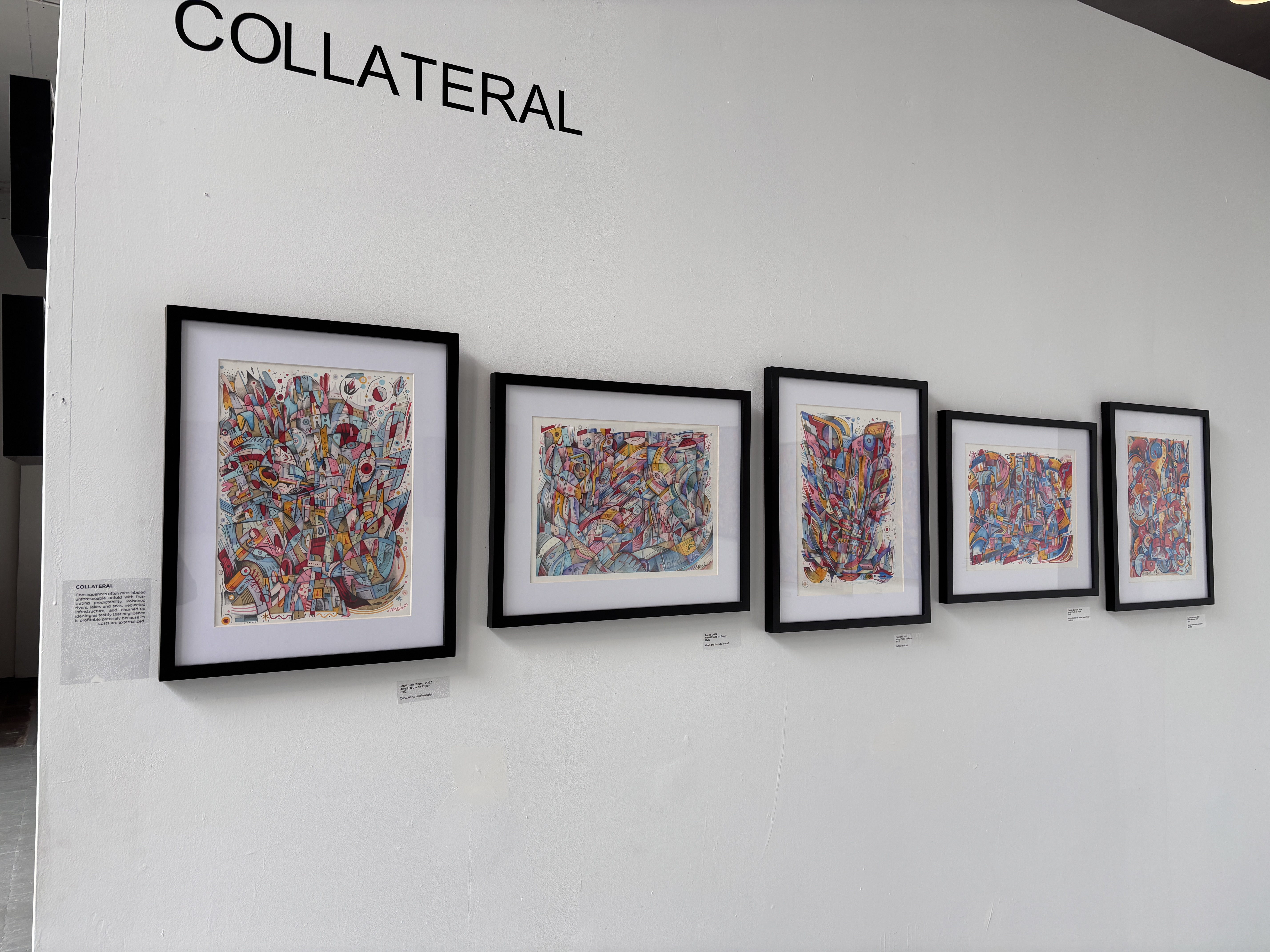 Through variations in scale, medium, and compositional rhythm, the five series articulate a sustained inquiry into authority, neglect, and the human condition.
