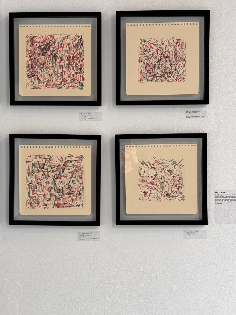 Together, these series form a visual architecture that situates the viewer within these systems, encouraging critical reflection rather than spectacle.