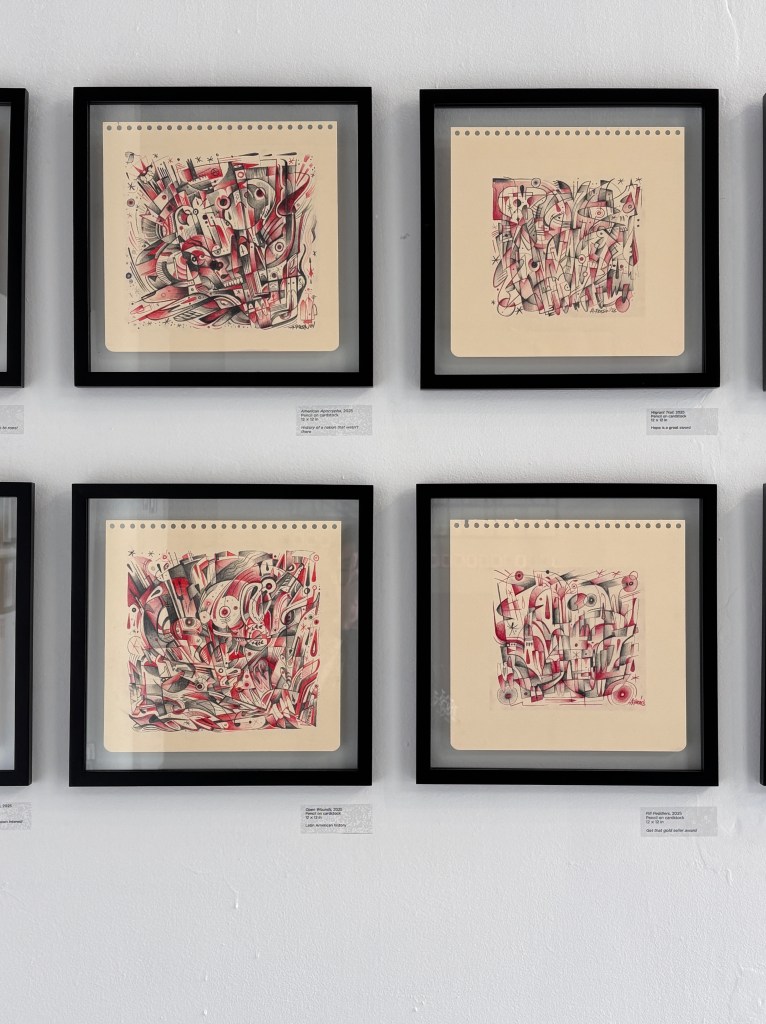 The exhibition is conceived as an evocation of standing at the base of a pyramid, a position in which all are equally exposed to systems of sacrifice. In this contemporary reimagining, the forces of incompetence, corruption, and apathy replace historical deities, operating through capitalist structures that shape power and control.